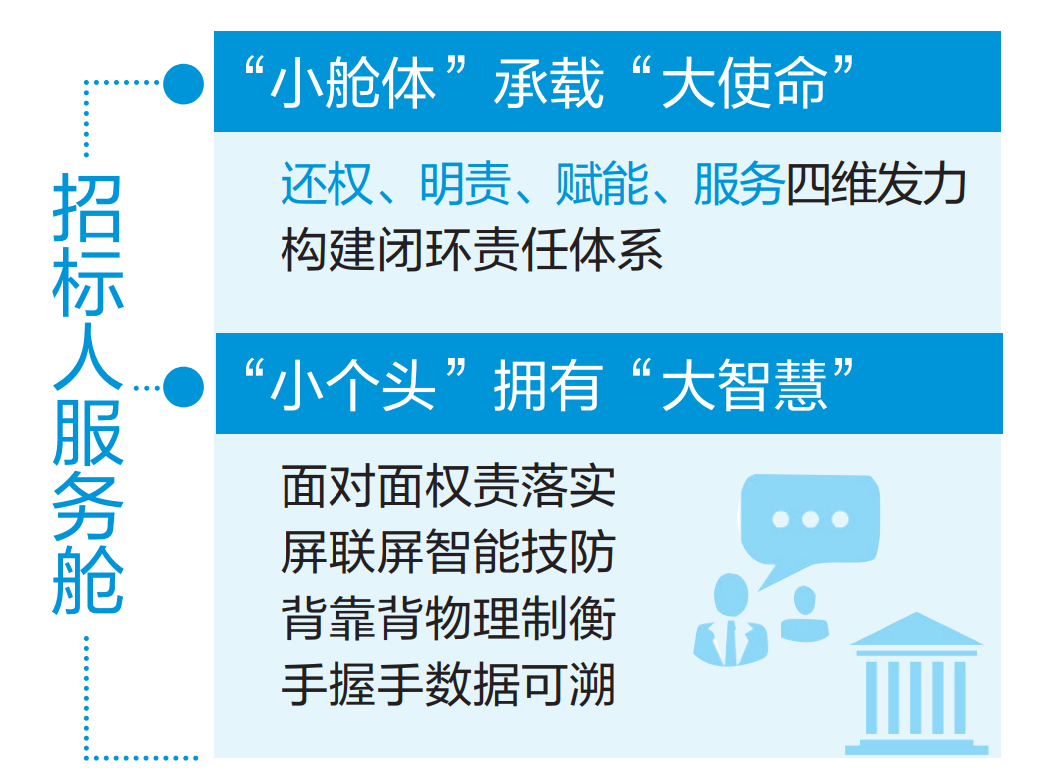 “以前来招标,就像‘赶大集’,开标室、监控室来回跑,既要盯流程又要盯专家,手忙脚乱!”11月20日,在焦作市公共资源交易中心,刚体验完“招标人服务舱”的某工程建设项目招标人李先生兴奋地说,“现在可好,坐进这个‘智能指挥舱’,一个房间、两块大屏,所有环节一目了然,心里踏实!” 李先生口中的“智能指挥舱”,正是焦作在全国首创的“招标人服务舱”。它瞄准了招标人以往“跑断腿、看不清、管不住”的履职痛点,用“制度+科技”双引擎,把国家要求的招标人主体责任,从纸面条款变成了“一门进入、一舱办结”的生动实践。 从“跑断腿”到“一舱管”,“小空间”实现“大整合”。 图为招标人智慧服务舱 这个服务舱巧妙地将开标区、监控室合二于一室,打造出“一沙发两屏幕三个人”的协同空间。招标人、监督人、代理机构代表“同舱”办公,彻底告别过去“赶场式履责、串门式查访”。“现在我们‘并肩作战’,流程全透明,效率翻倍增!”李先生笑着说。 “智能哨兵”全程护航,异常行为实时预警。 科技感,是服务舱的另一大亮点。11时左右,监控大屏突然弹窗:“评标区两名专家在交流”。李先生立即戴上耳机“旁听”,确认是技术讨论后松了口气:“这系统像‘电子哨兵’,有风吹草动立马报警,我们监督起来更有底气!” 这里不仅有“耳聪目明”的智能见证系统,还有全程留痕的“三方通话”。招标人如需与专家沟通,一键即可发起,所有对话录音录像,既保障权利,又杜绝“打招呼”。 现场可见,电视屏幕实时切换显示开标流程与评标现场,专家入场、通信工具存放等环节全程可视。 “四维赋能”压实责任,“小舱体”承载“大使命”。 服务舱虽小,却能通过“还权、明责、赋能、服务”四维发力,构建闭环责任体系—— 还权:让招标人从“被动配合”变“主动履职”,真正当家作主; 明责:所有操作“来源可溯、去向可查、监督留痕、责任可究”; 赋能:全流程可视化监控,降低履职疏漏风险; 服务:“同舱办公+专人对接”,AI智能客服即时在线,问题现场解决,顾虑一扫而空。 图为预警纠错系统截图 这个藏着“大智慧”的“小个头”,通过“面对面权责落实、屏联屏智能技防、背靠背物理制衡、手握手数据可溯”四大机制,为招投标市场注入清流。 据悉,该服务舱自11月中旬试运行以来,已保障多个项目顺利完成。这一闪烁“焦作智慧”的创新方案,正为全国统一大市场建设提供可复制、可推广的鲜活样本! 图表策划:聂楠 图表制作:车璇